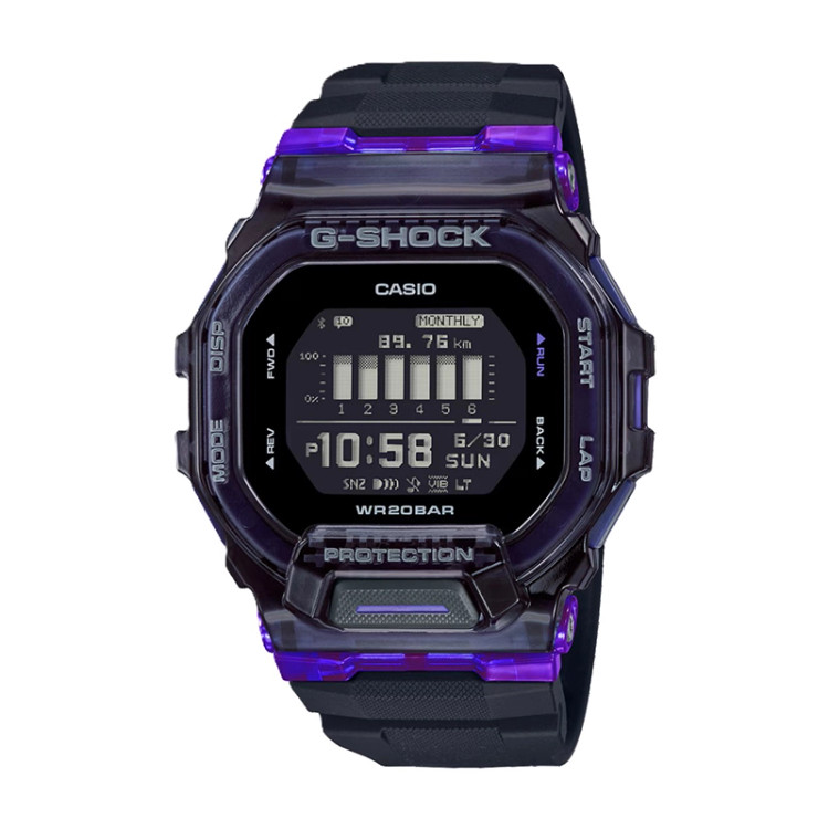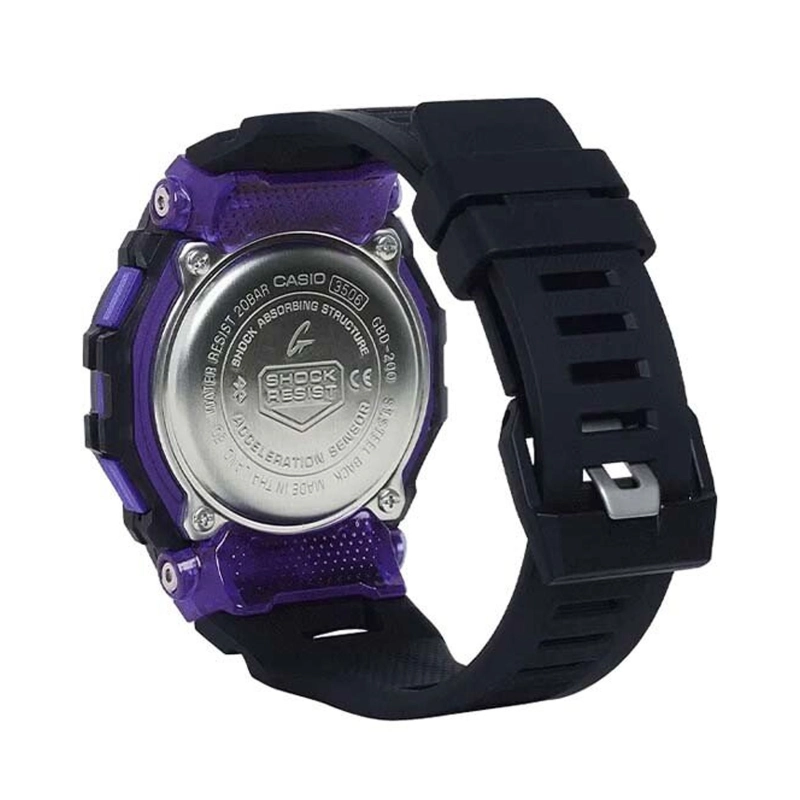 ساعت مچی اسپرت جی شاک کاسیو مدل G-SHOCK GBD-200-2DR باریکترین مدل G-SQUAD تا کنون، با شیارهای جانبی روی قاب که رنگ داخلی آن را به نمایش میگذارد، ظاهری خاص و مدرن ارائه میدهد. دکمه نور در جلوی قاب قرار گرفته تا در تمرینات شبانه خوانایی آسان را فراهم کند.