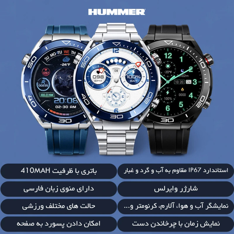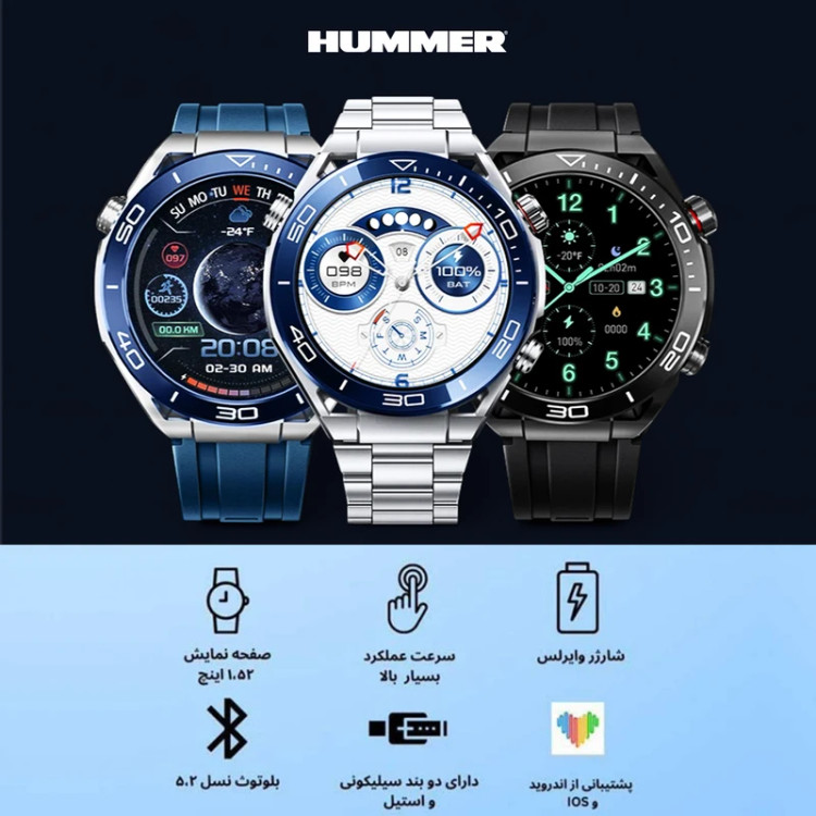 دو بند قابل تعویض/شارژر وایرلس/بلوتوث نسل 5.2/گلس محافظ/کیفیت HD/ابزار تعویض بند/پشتیبانی از زبان فارسی