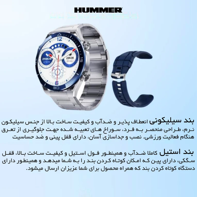 دو بند قابل تعویض/شارژر وایرلس/بلوتوث نسل 5.2/گلس محافظ/کیفیت HD/ابزار تعویض بند/پشتیبانی از زبان فارسی
